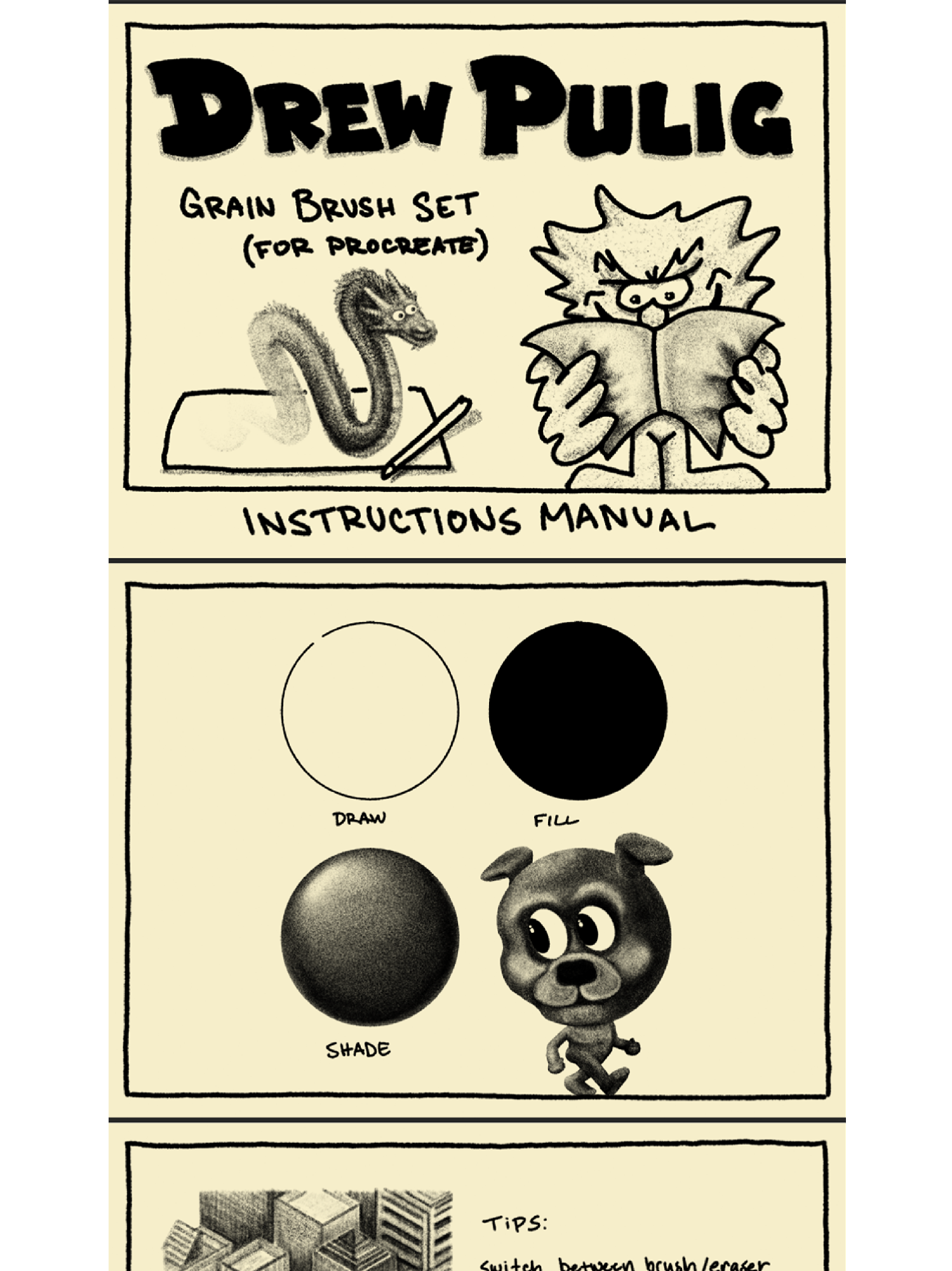 Included in the digital download is the .brushset file and the instruction manual .pdf
